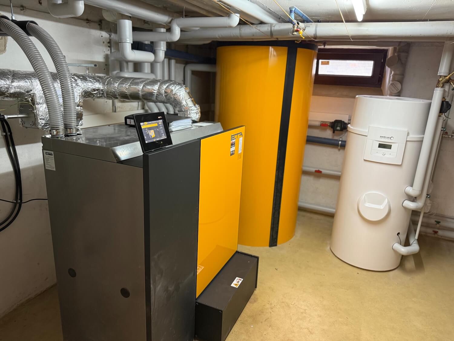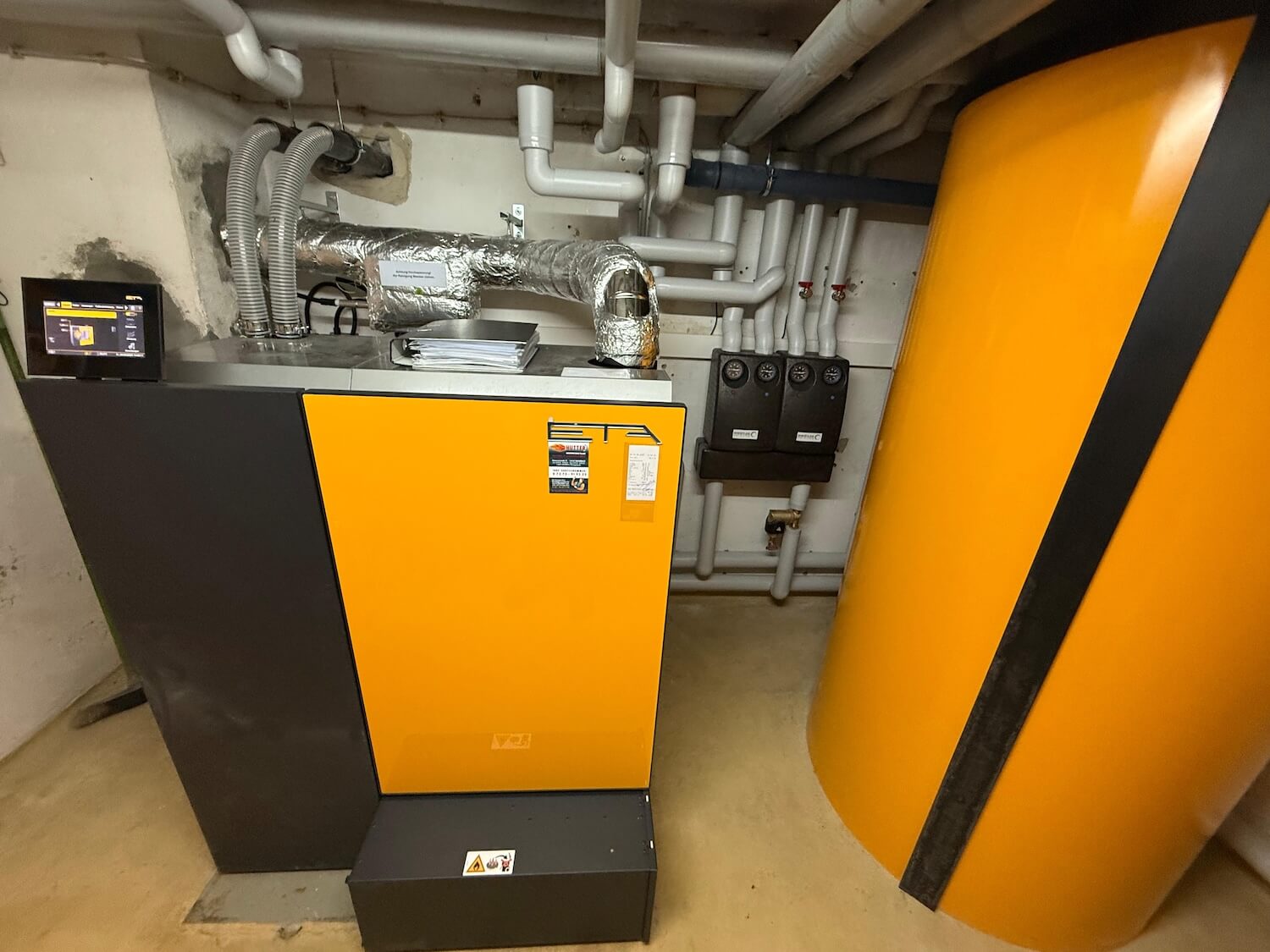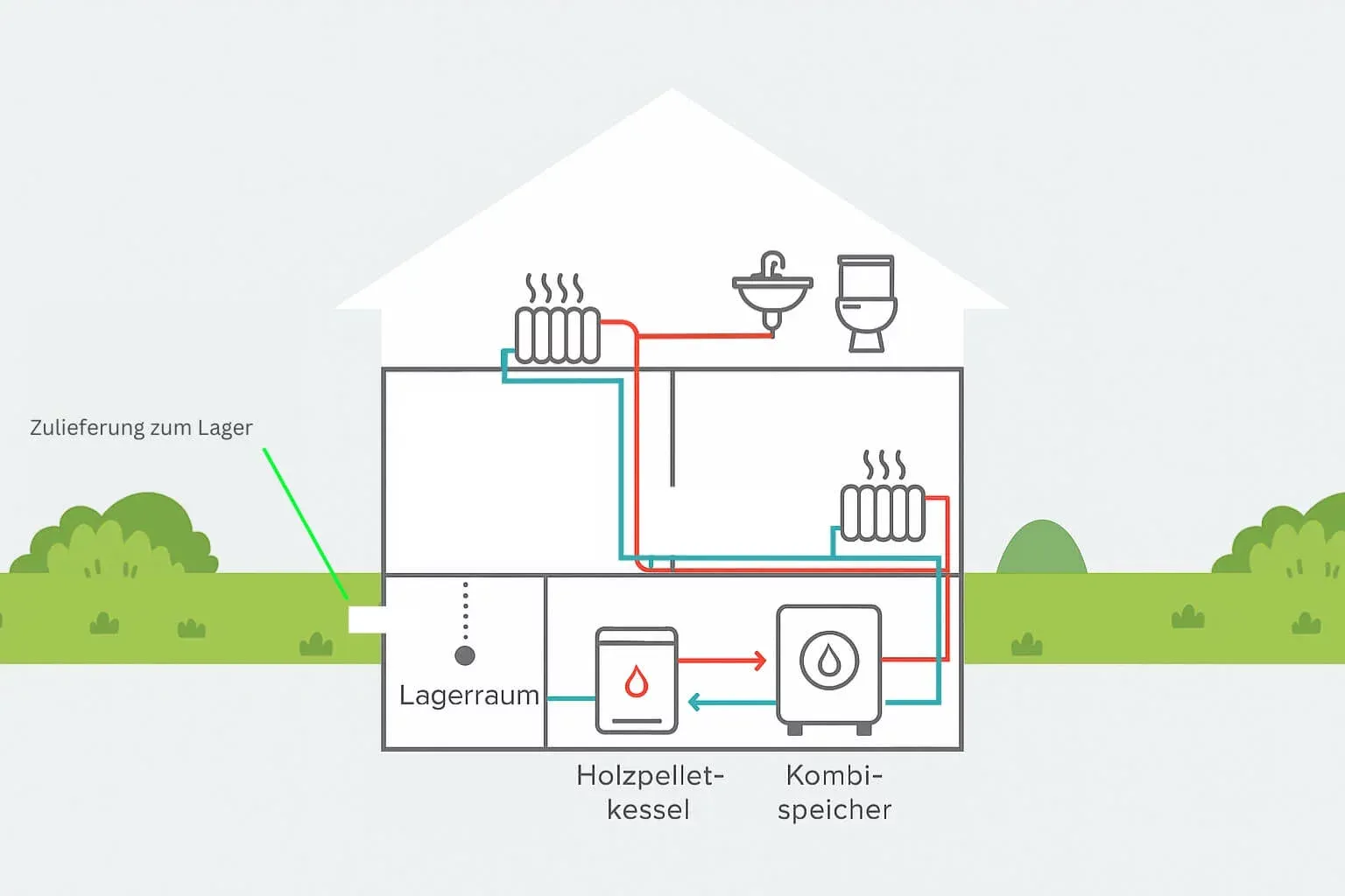 Die Pellets werden aus dem Lagerraum oder Vorratsbehälter automatisch in den Brennraum befördert. Dort erfolgt die saubere und kontrollierte Verbrennung. Die entstehende Wärme wird an das Heizungs- und Warmwassersystem übertragen. Ein Pufferspeicher sorgt dafür, dass die Wärme gleichmäßig und bedarfsgerecht im Haus verteilt wird.