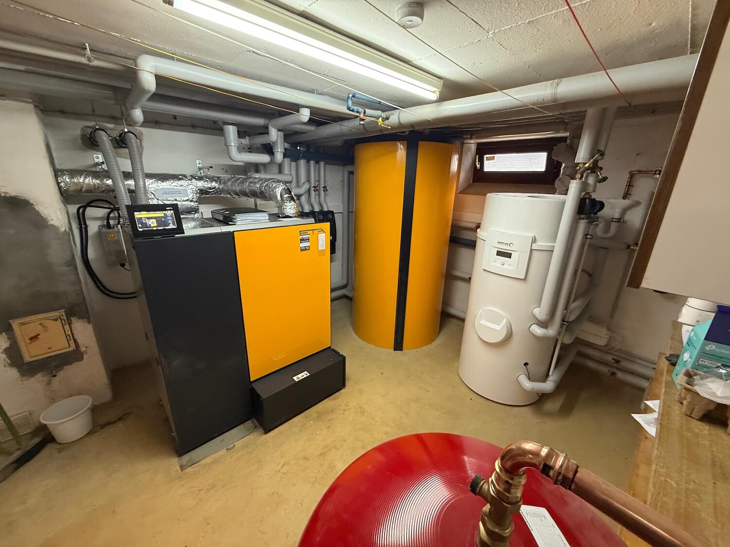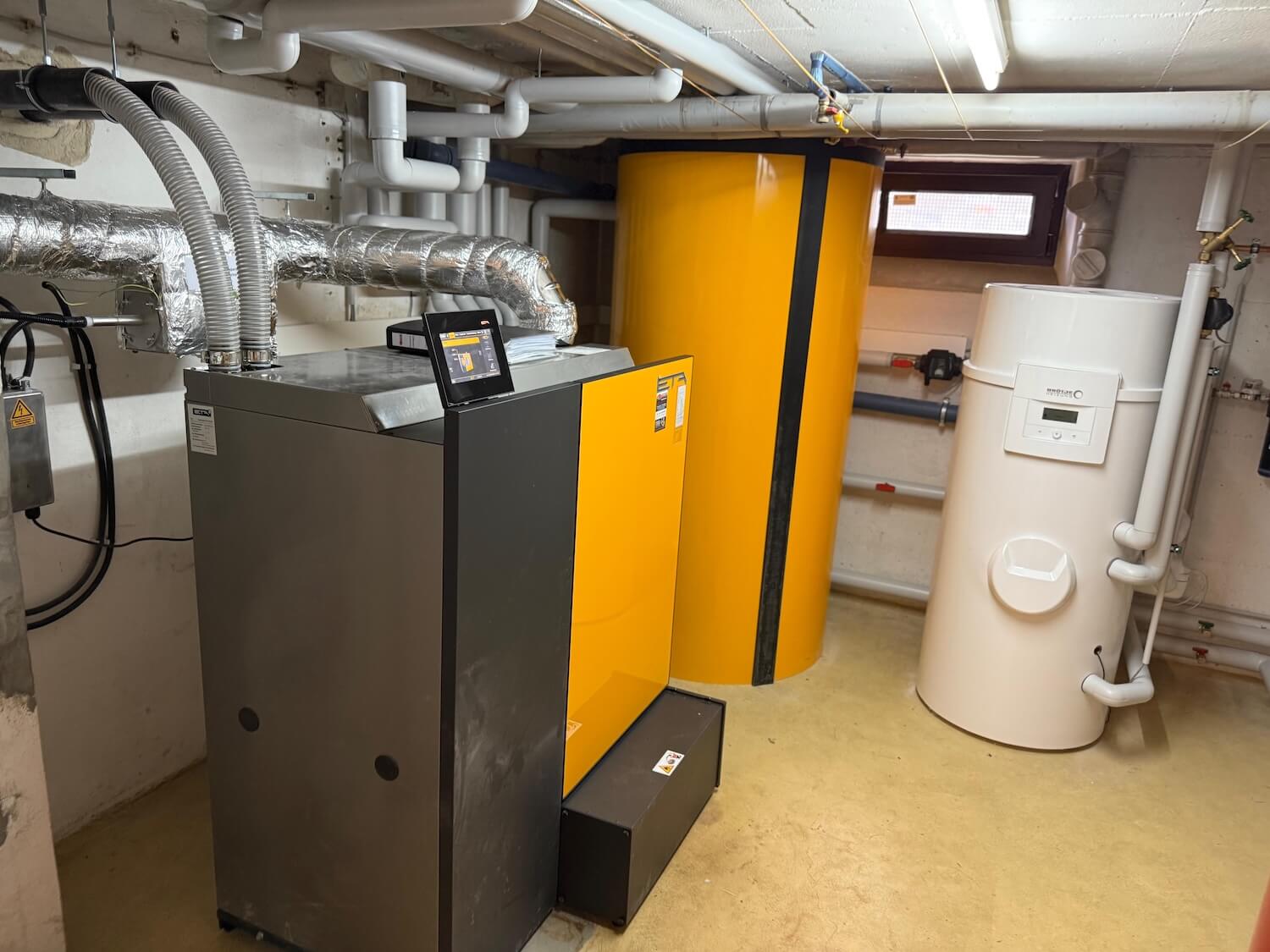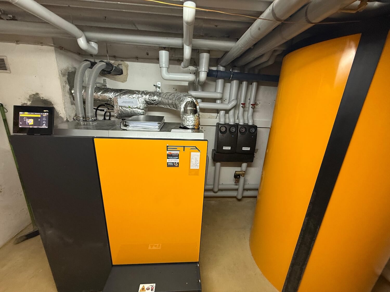 Die Pellets werden aus dem Lagerraum oder Vorratsbehälter automatisch in den Brennraum befördert. Dort erfolgt die saubere und kontrollierte Verbrennung. Die entstehende Wärme wird an das Heizungs- und Warmwassersystem übertragen. Ein Pufferspeicher sorgt dafür, dass die Wärme gleichmäßig und bedarfsgerecht im Haus verteilt wird.
